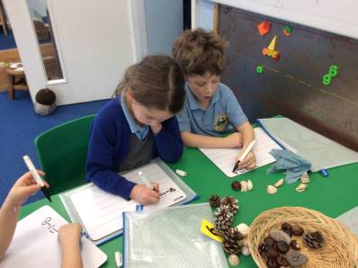 We have also started a little bit of maths work this week, the Reception children have been playing games that involve matching things and the Year 1 children have been learning about different ways of sorting objects and practising their accurate counting.