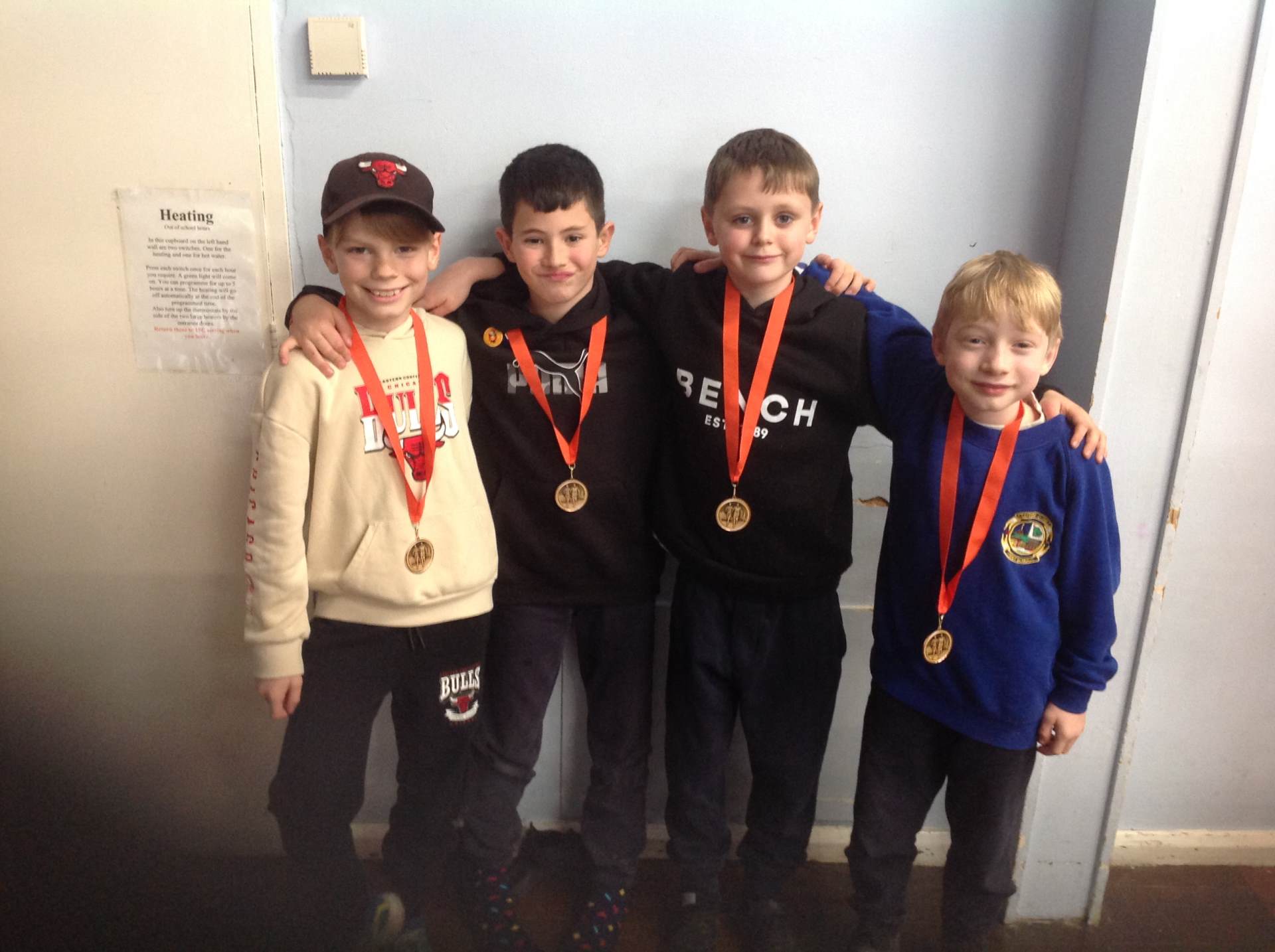 I was extremely proud of the children's sports man ship and resilieance. They cheered each other on and encouraged those who found it tricky in a very caring and supportive manor. I am pleased to say every child completed the course! 1km for the year 4,s and a very muddy 1.5km for the year 5's. As you can see we even came home with lots of medals.......... well done to the Year 4 and the Year 5 boys teams and to Josh who got an individual medal.